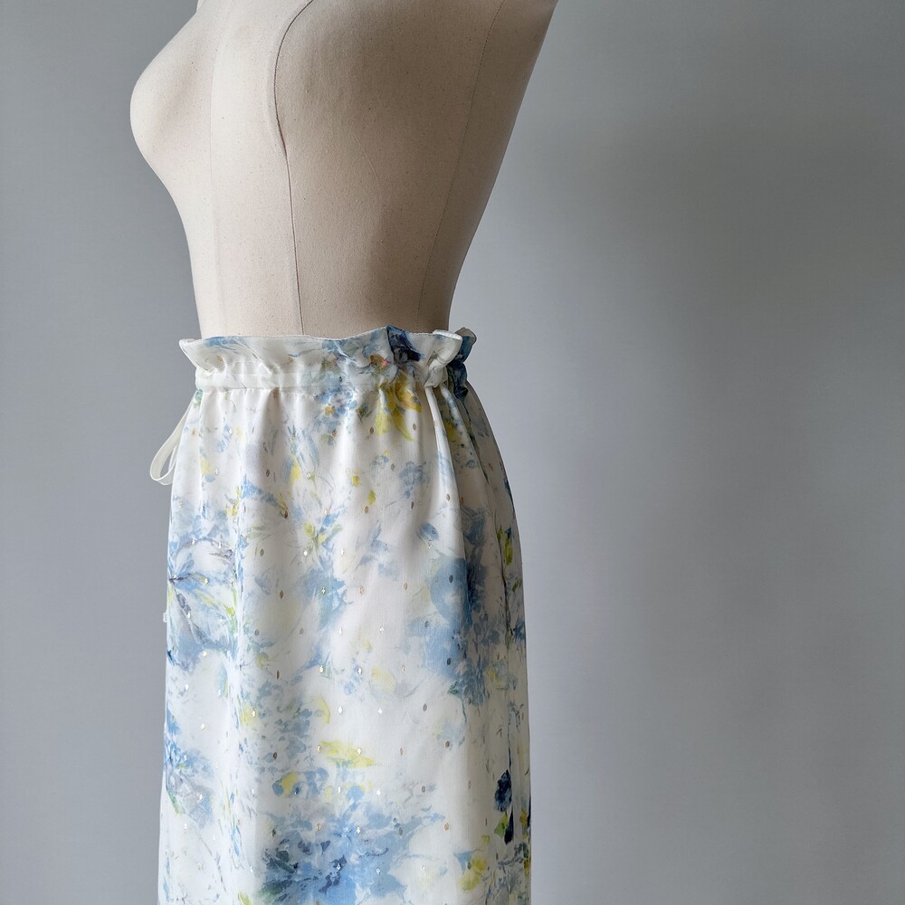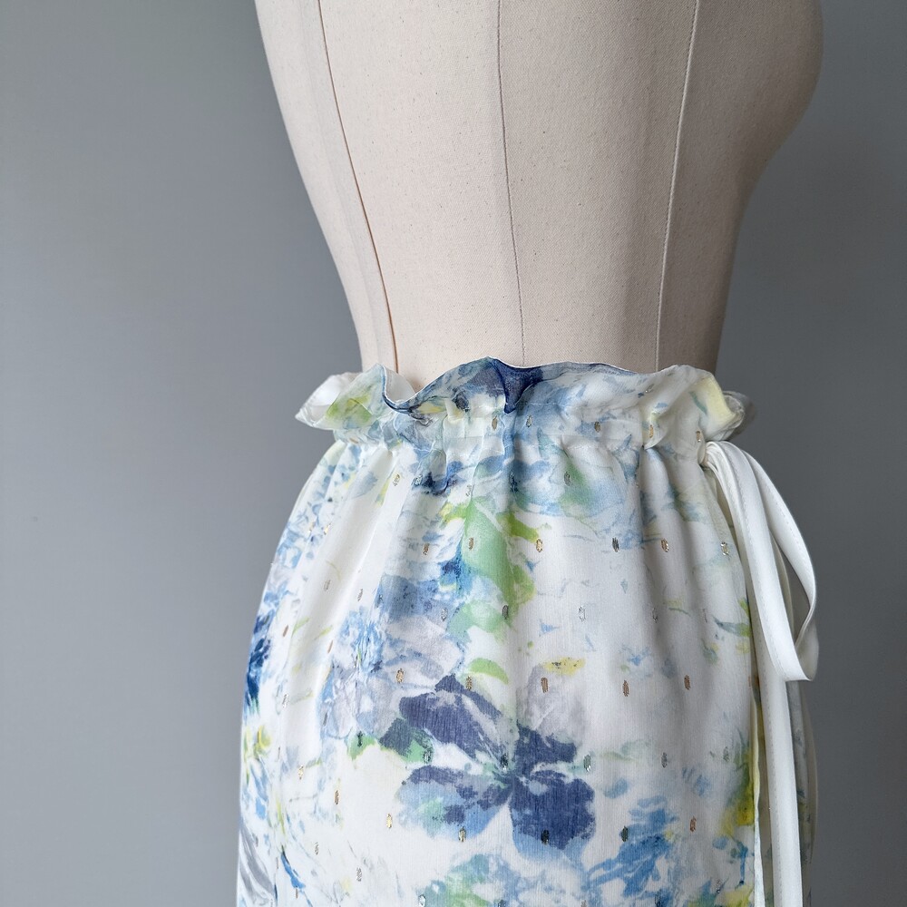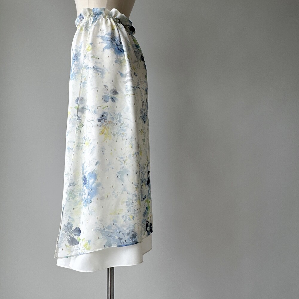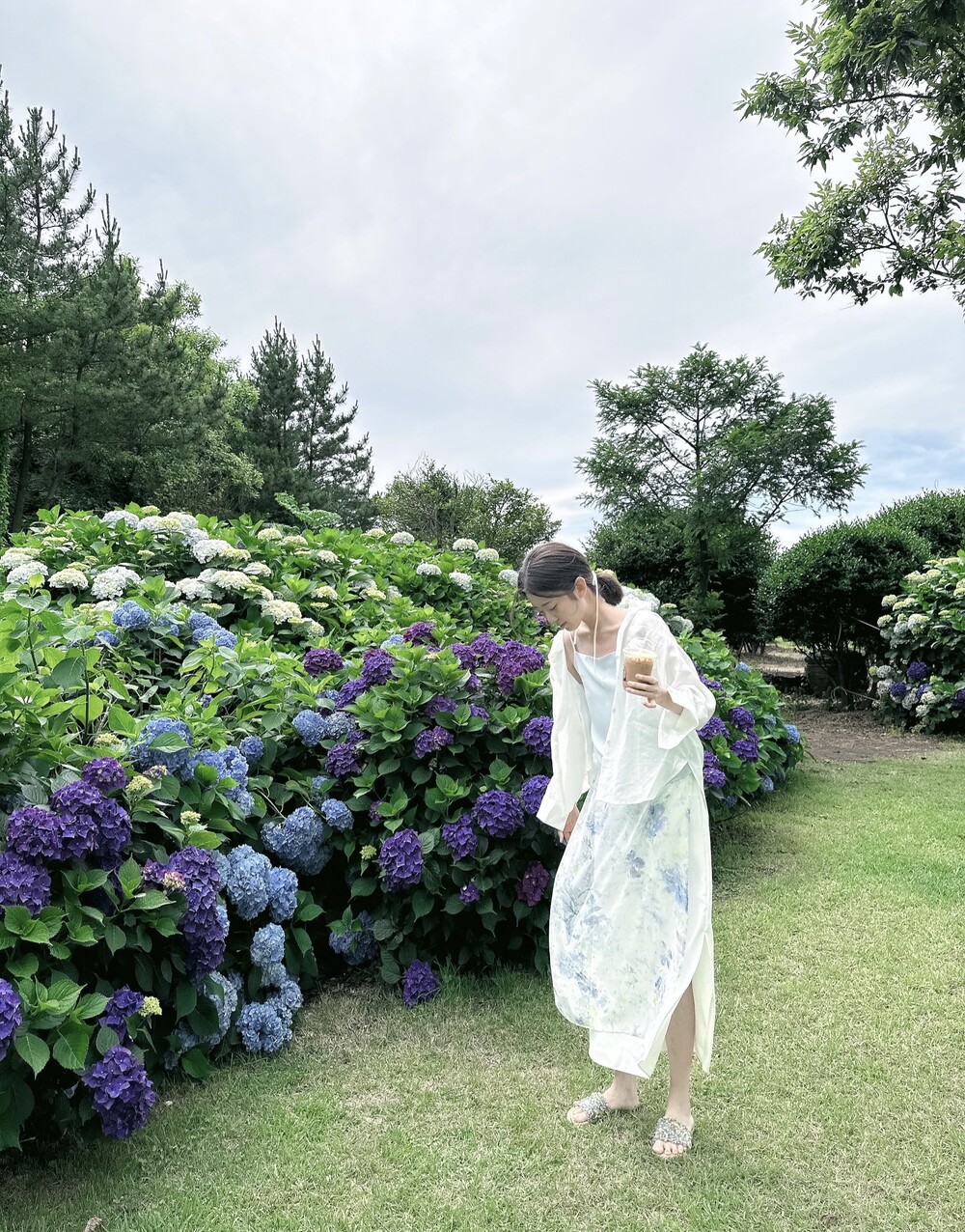 푸른 꽃무늬 요루쉬폰이 신비로운 무드를 연출합니다