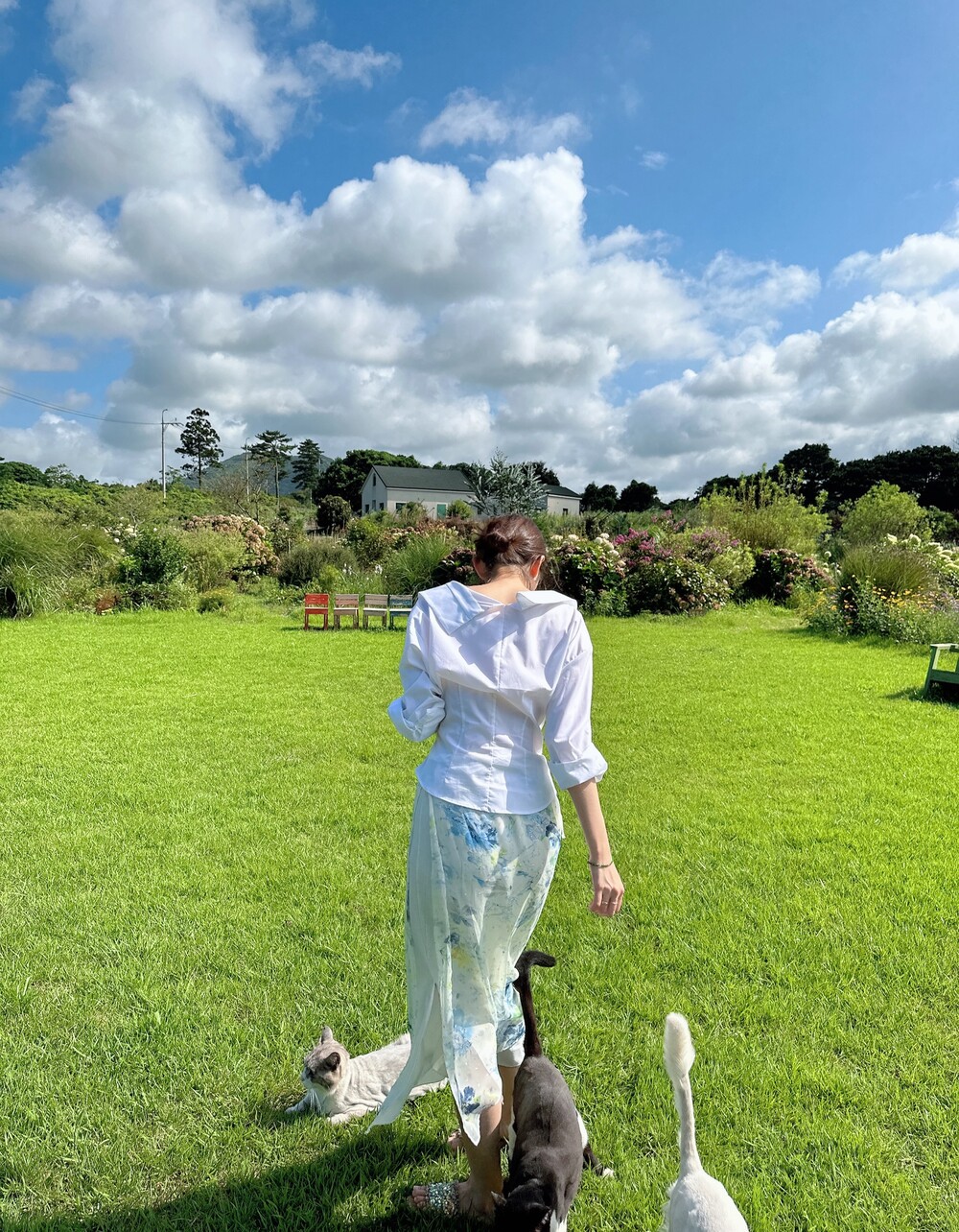 블라우스를 바깥으로 꺼내어 입었는데요,