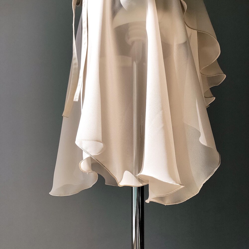 사방 언발런스 디자인과 물결같은 드레이핑이