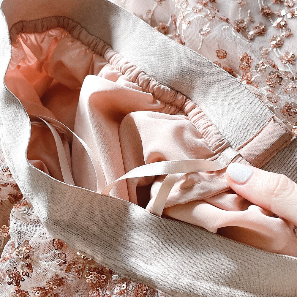 부드러운 슬립 소재의 고급원단을 길게 넣었어요.