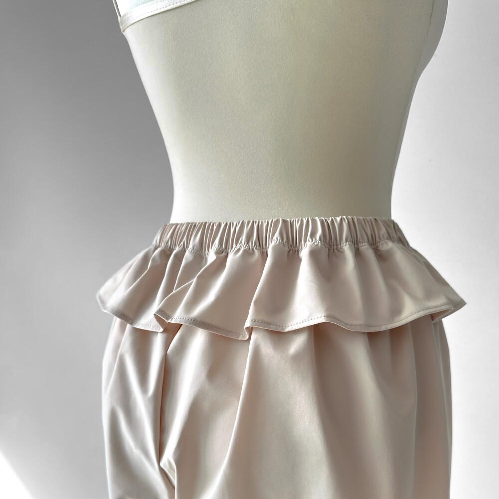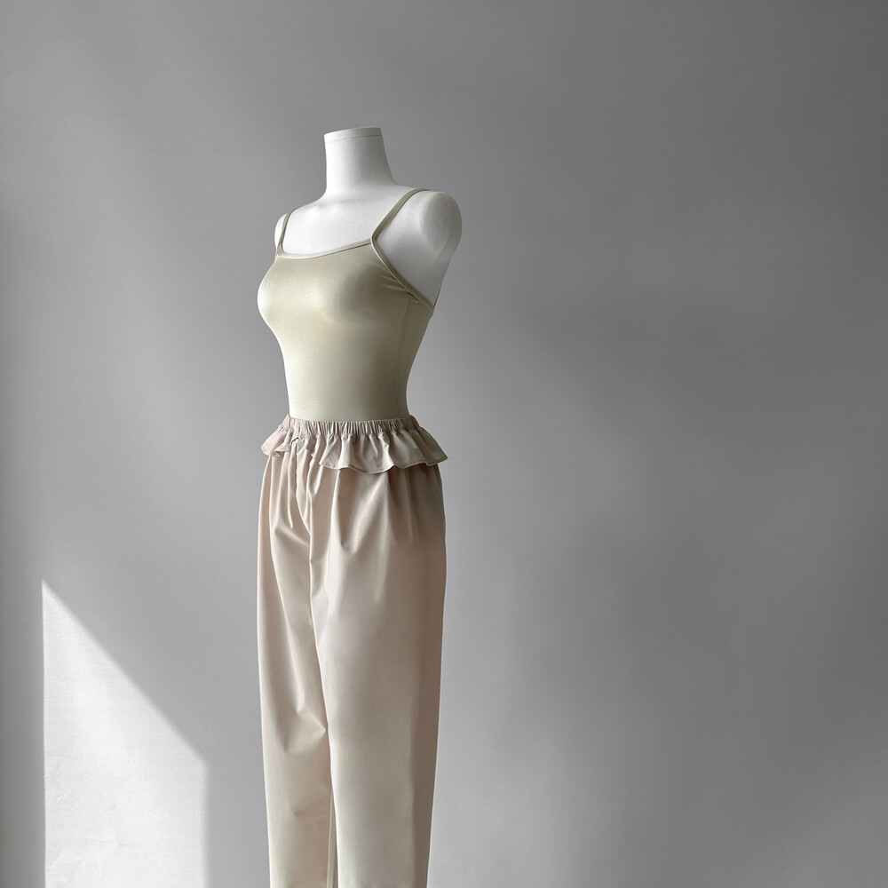 날개 프릴 디자인이 특징인 땀복바지예요!