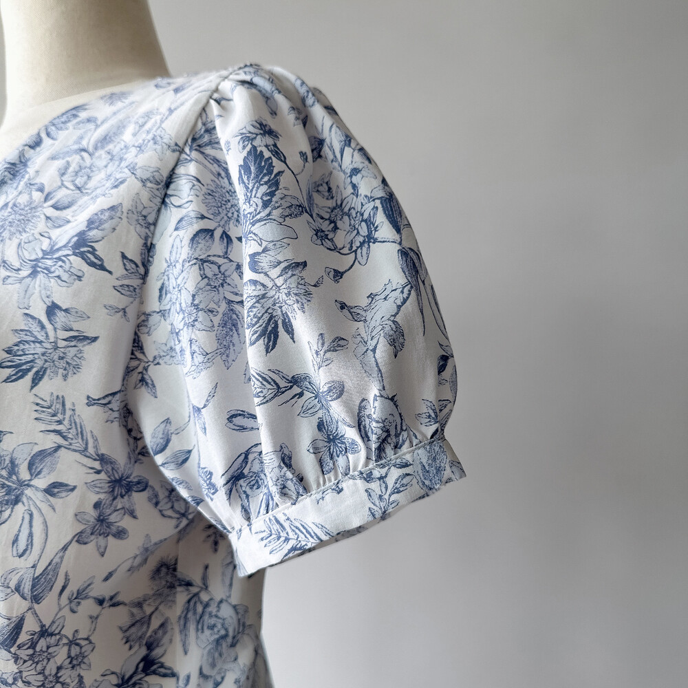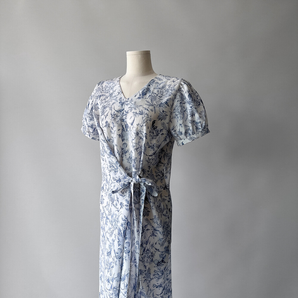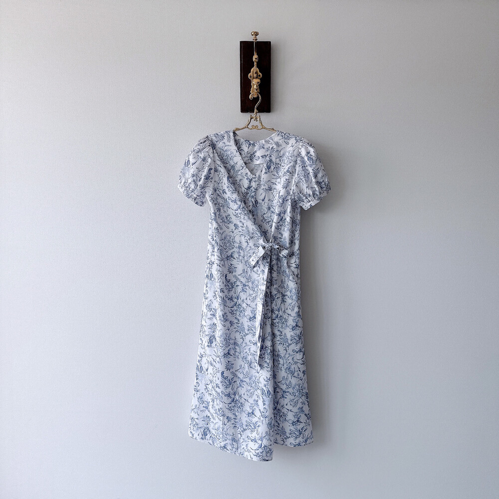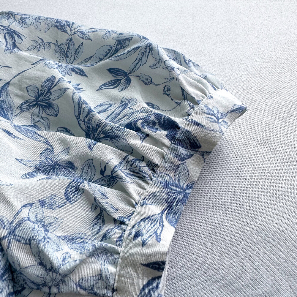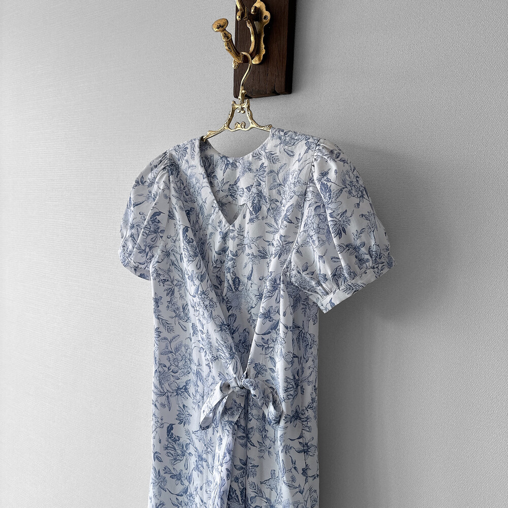 뉴욕빈티지 무드의 블루 플라워 패턴을 프린팅을 해서