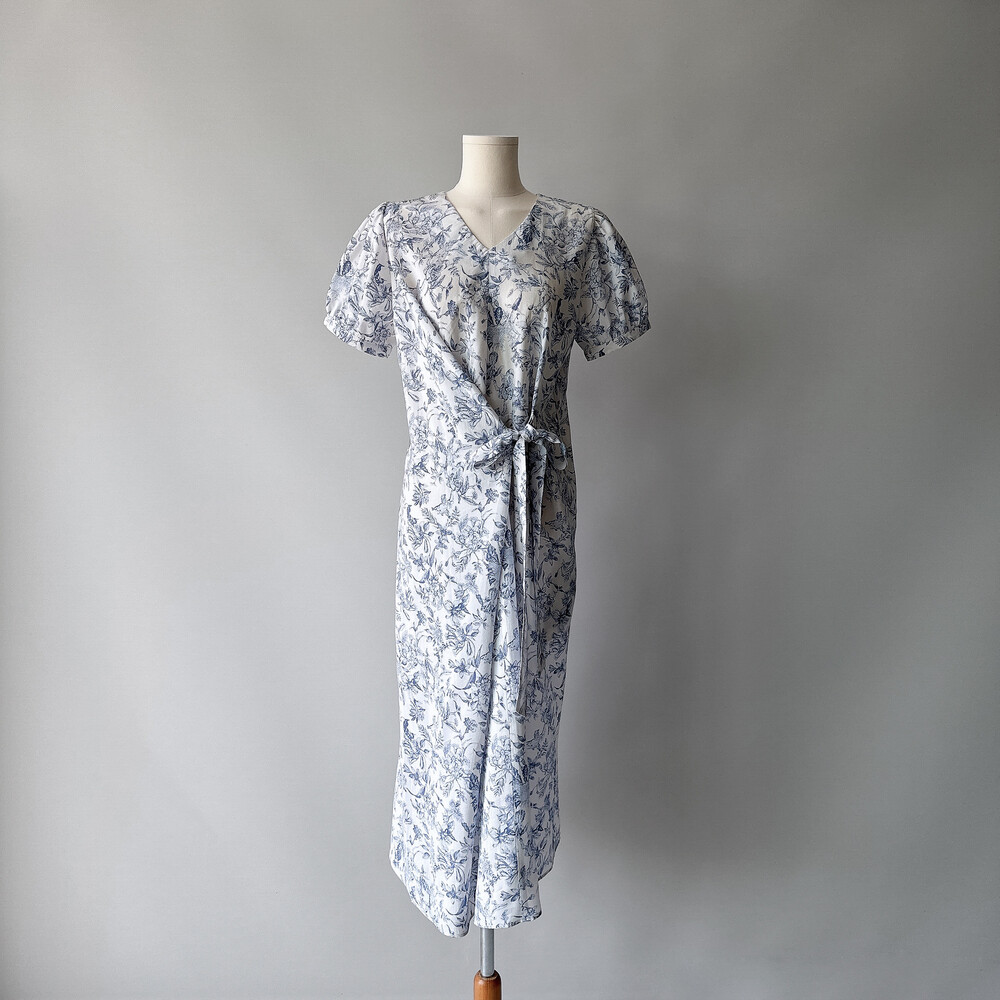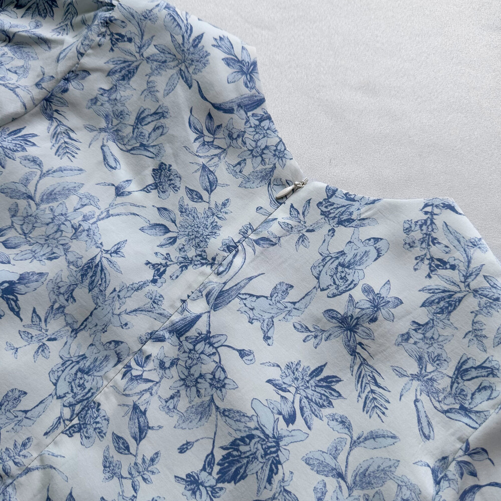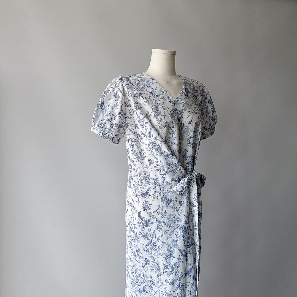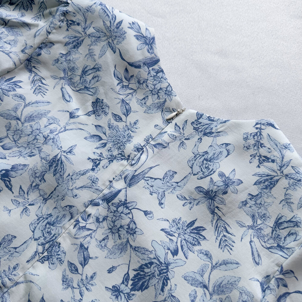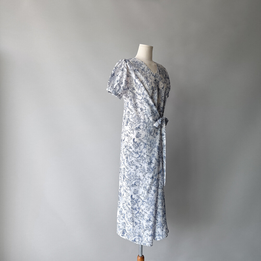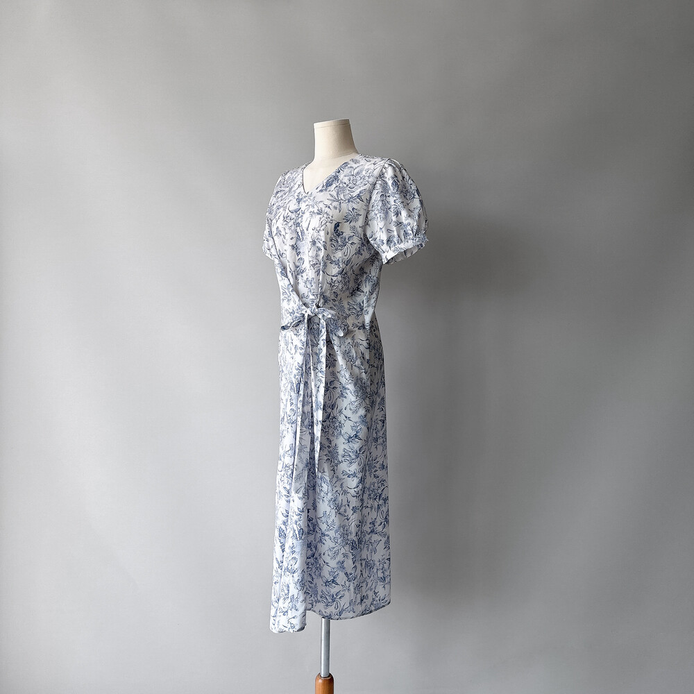 뉴욕빈티지 무드의 블루 플라워 패턴을 프린팅을 해서