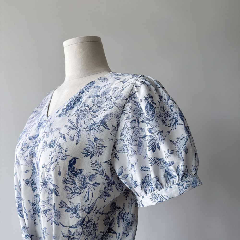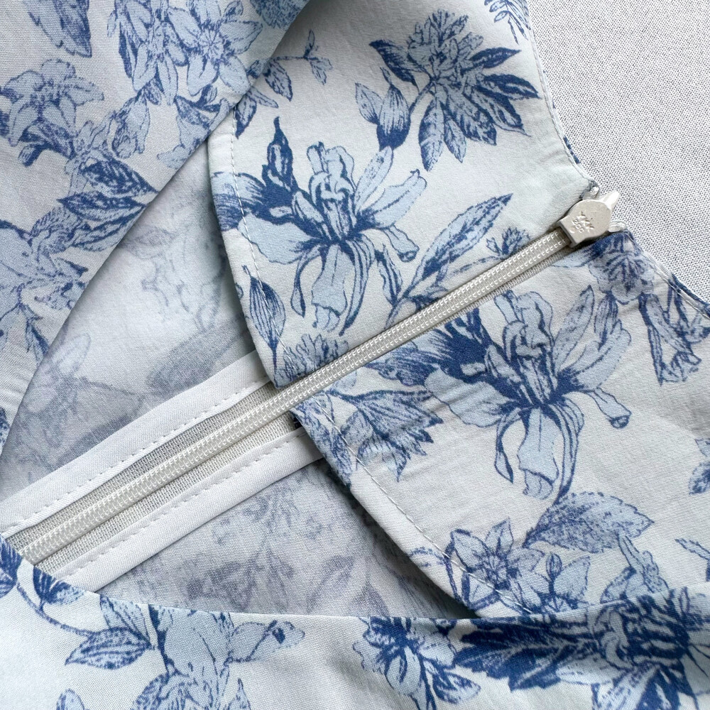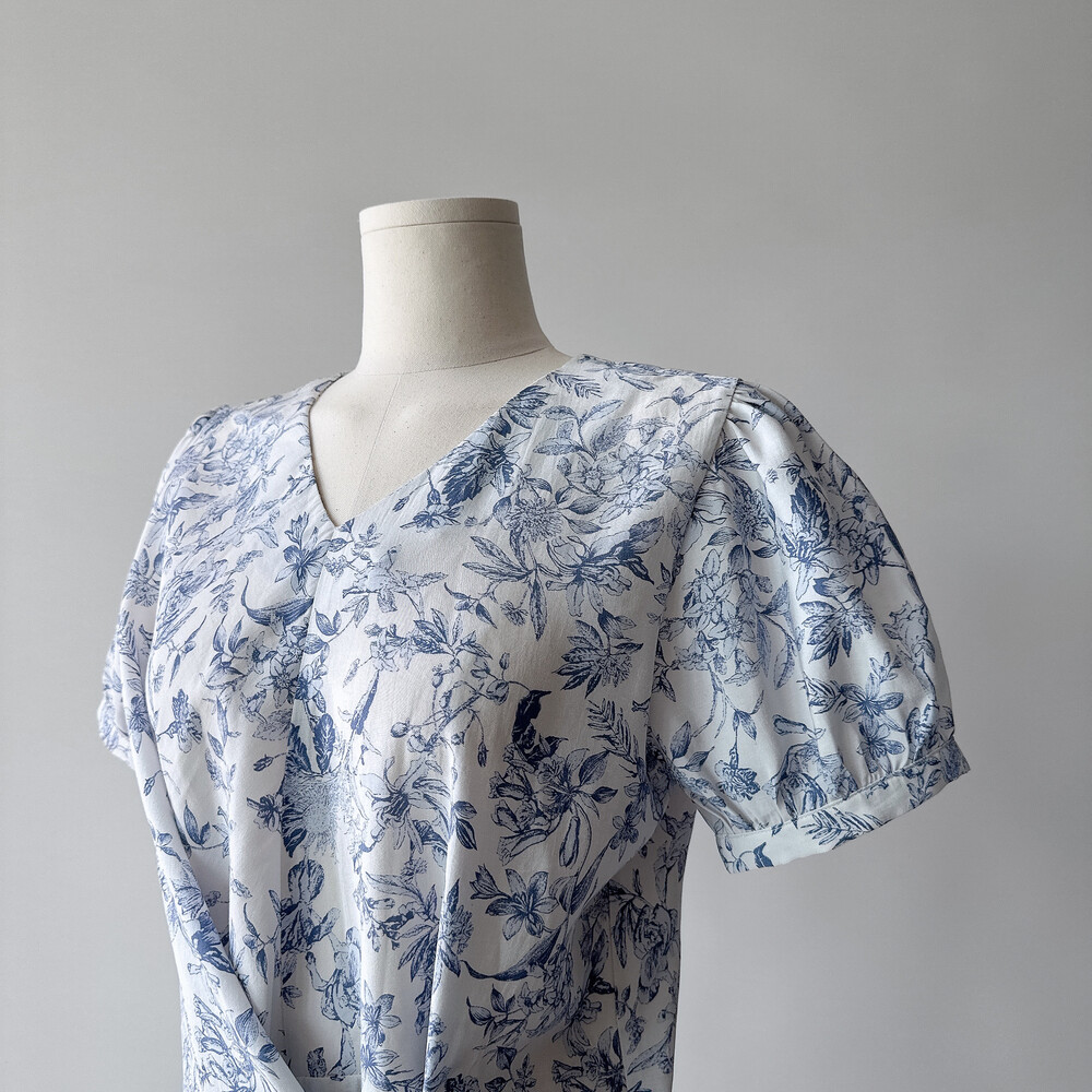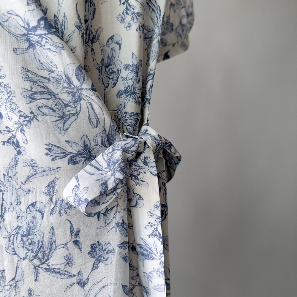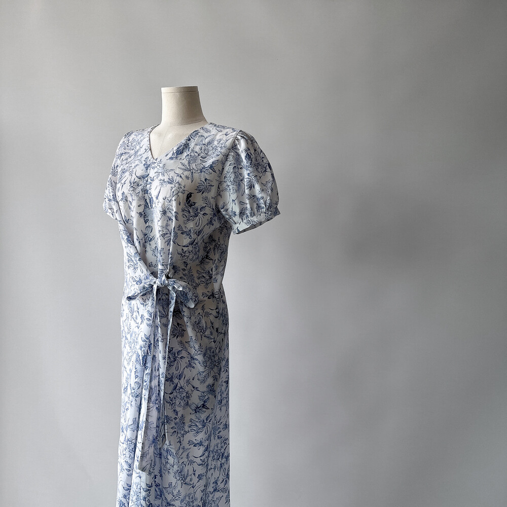 뉴욕빈티지 무드의 블루 플라워 패턴을 프린팅을 해서