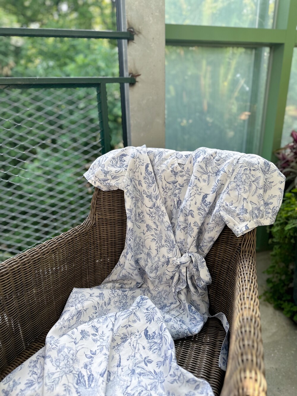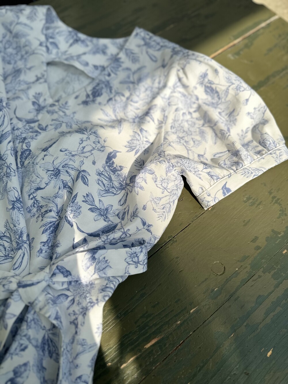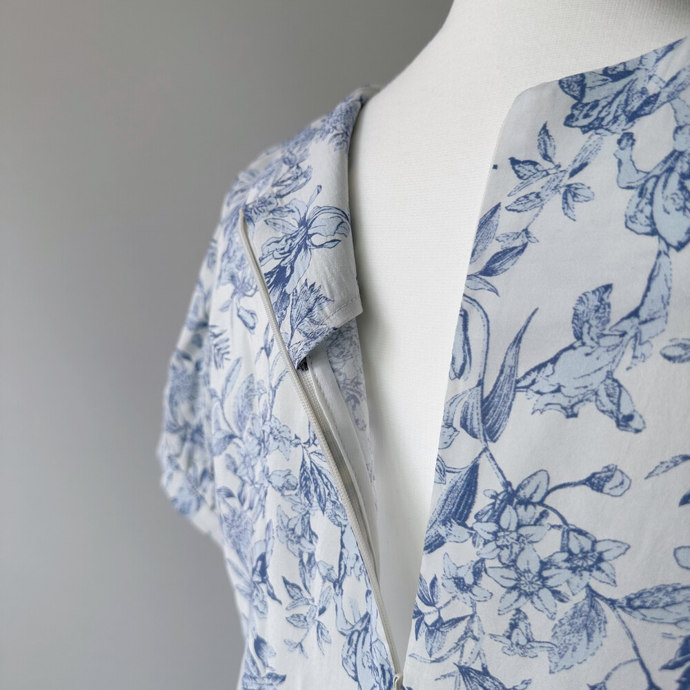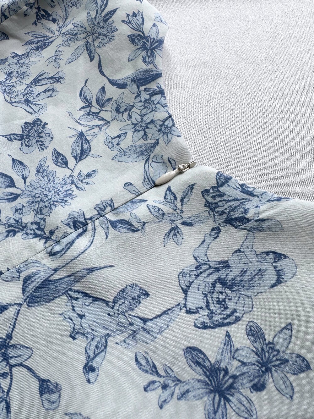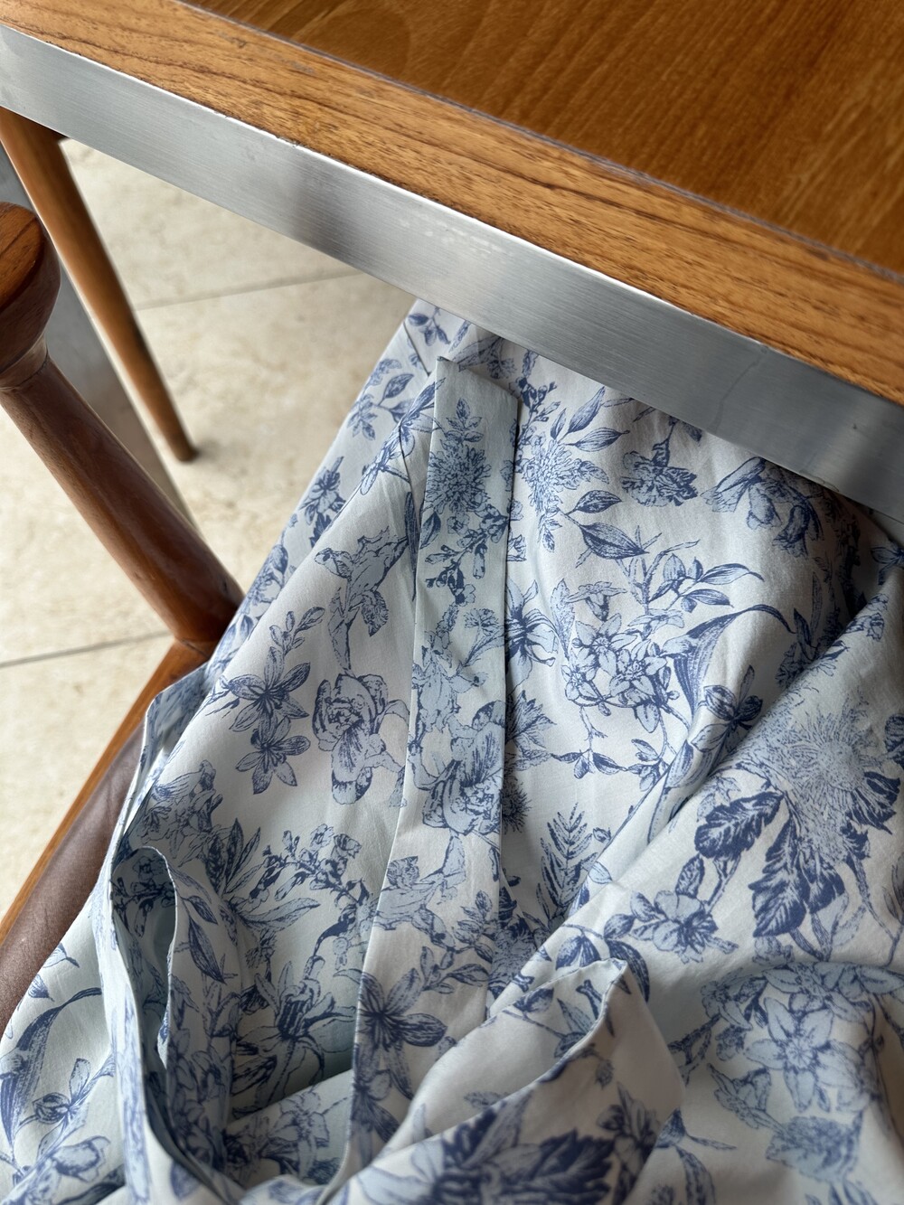 뉴욕빈티지 무드의 블루 플라워 패턴을 프린팅을 해서