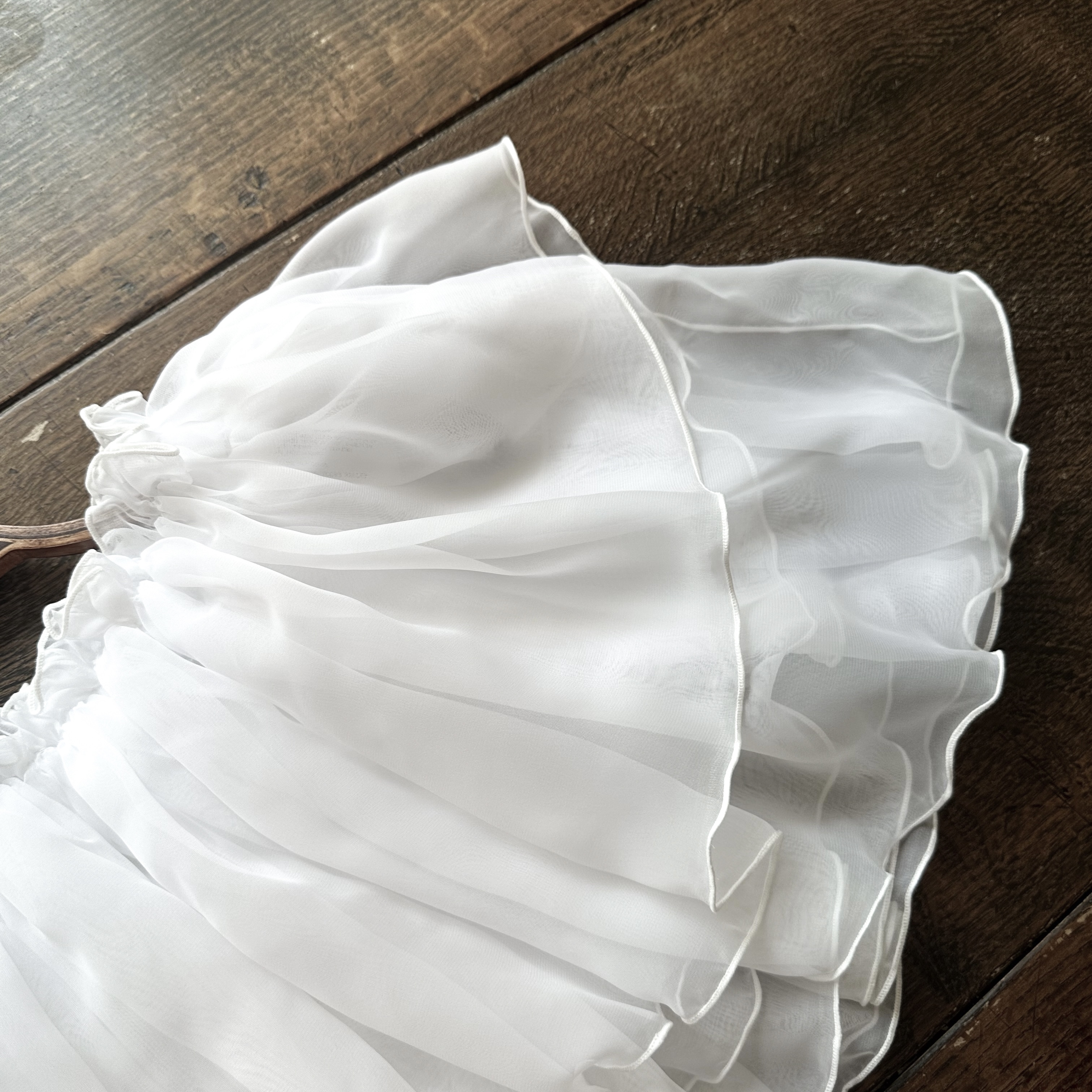 한 겹씩 떨어지는 화이트 폴리실크 원단이