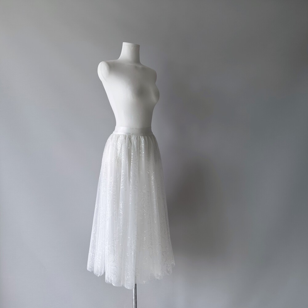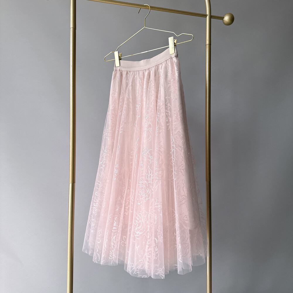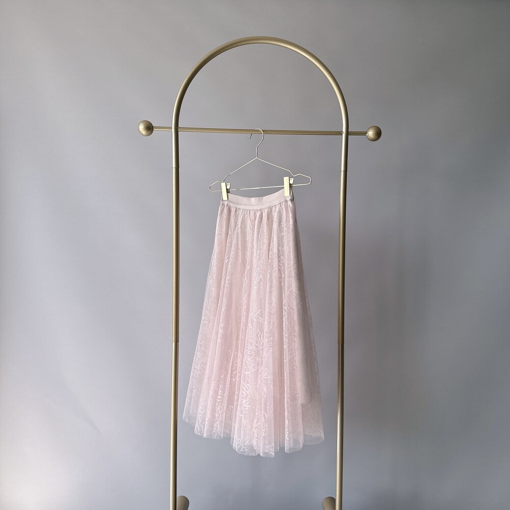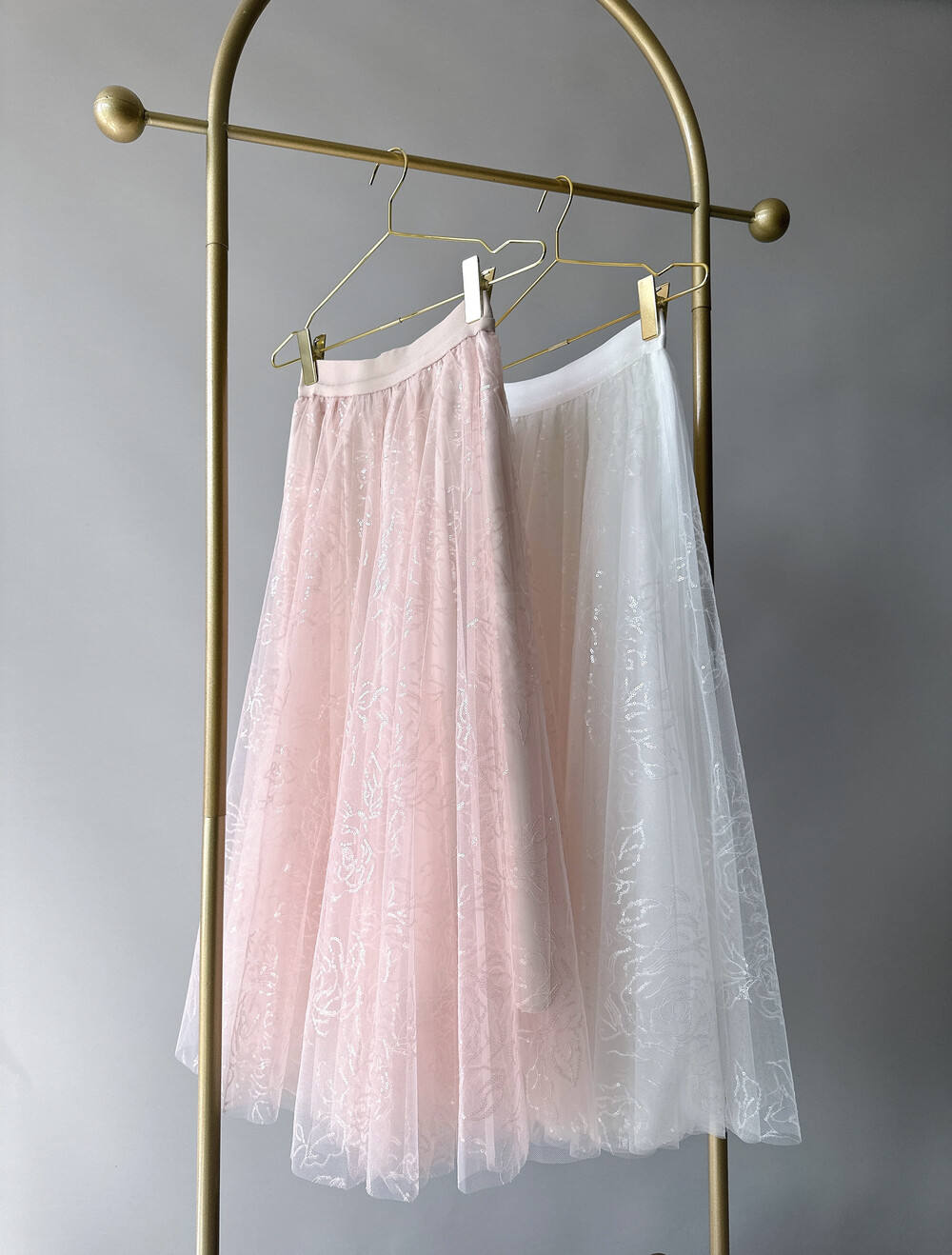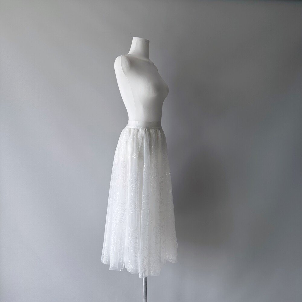 우아한 자수로 장미꽃이 수놓아진 샤 스커트.