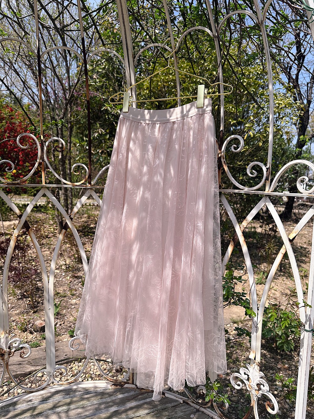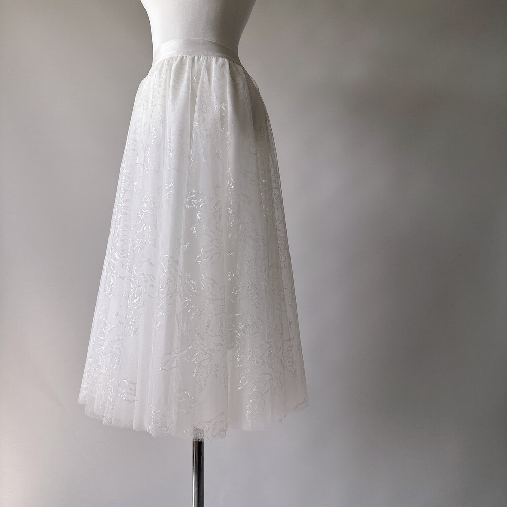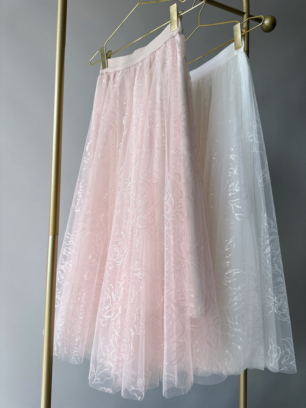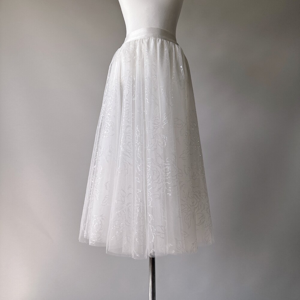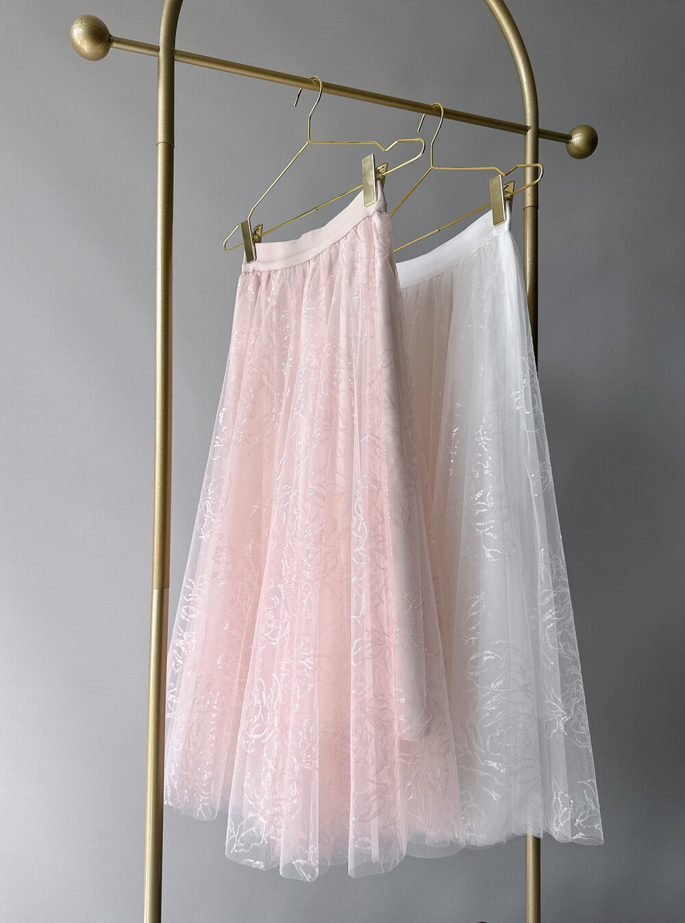 우아한 자수로 장미꽃이 수놓아진 샤 스커트.