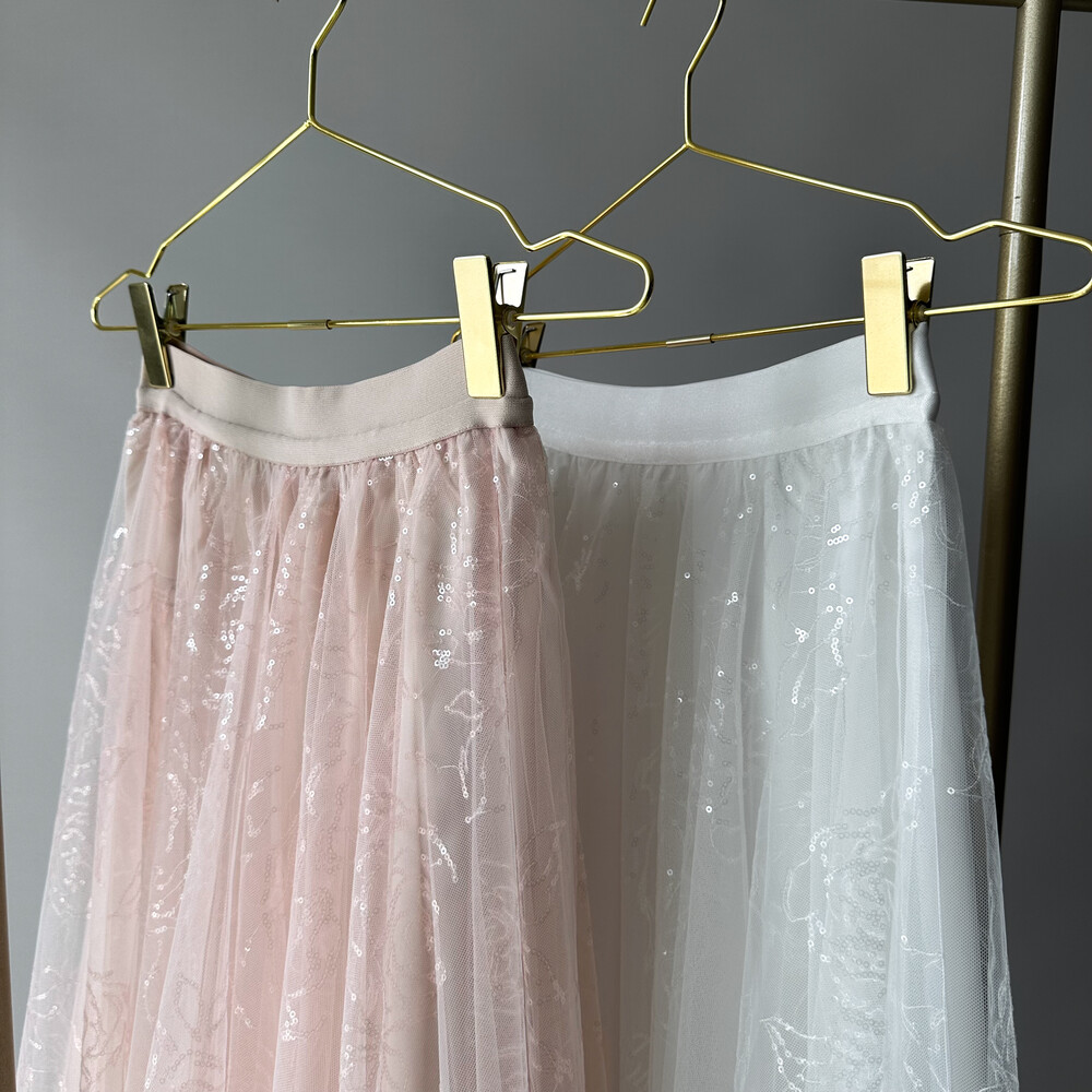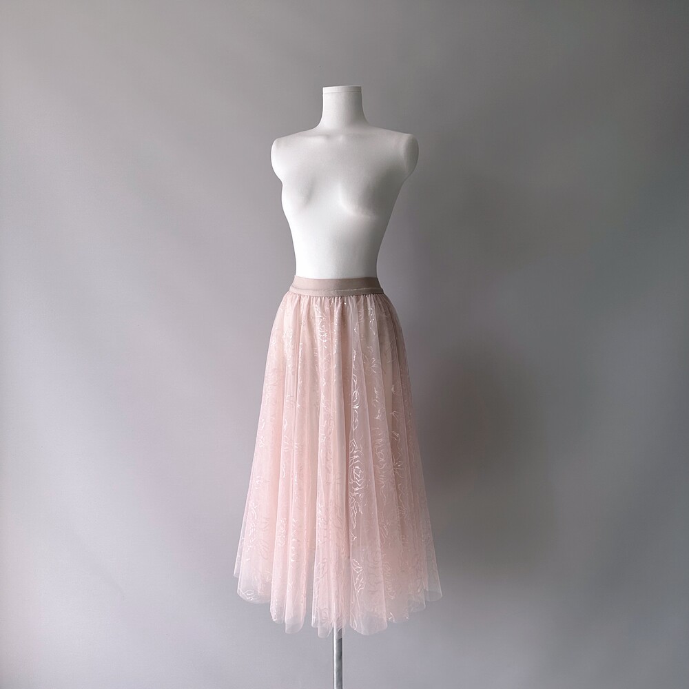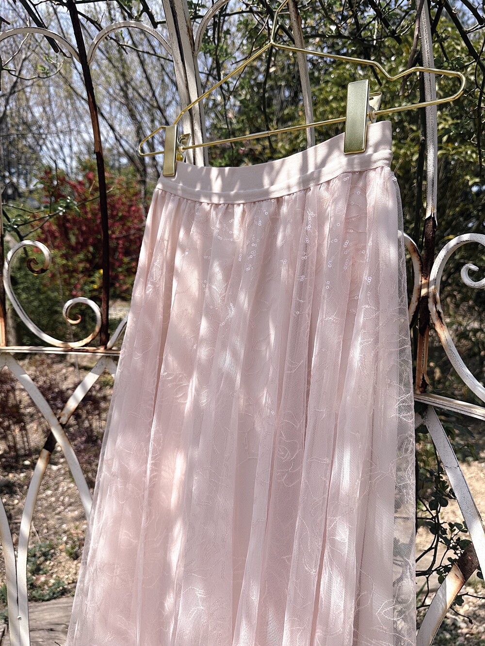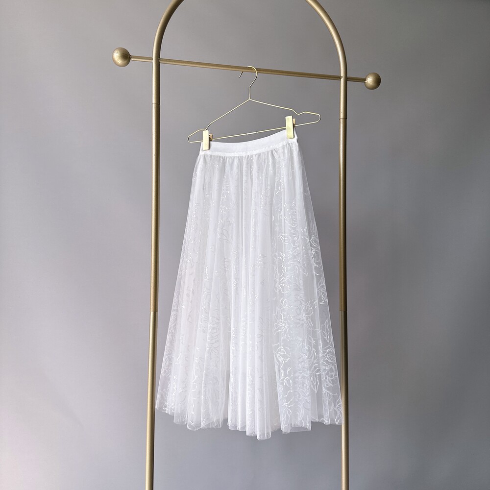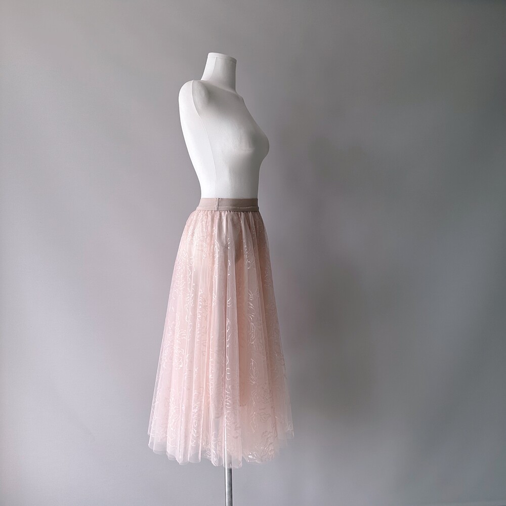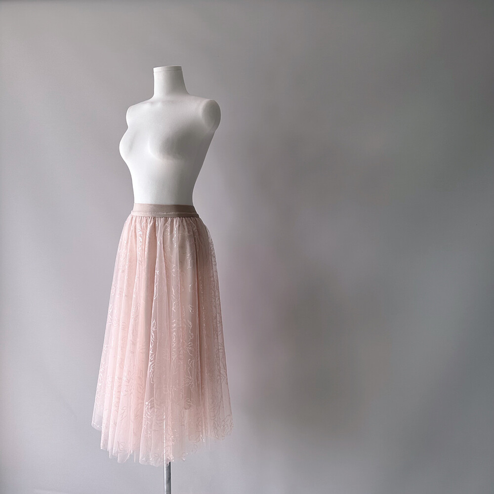 우아한 자수로 장미꽃이 수놓아진 샤 스커트.