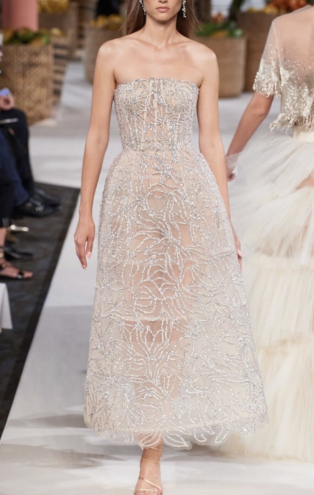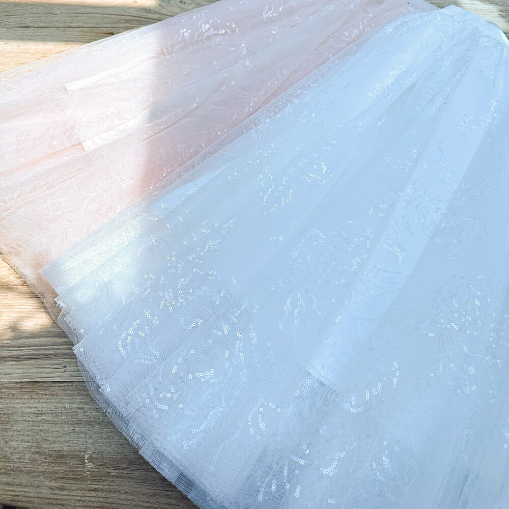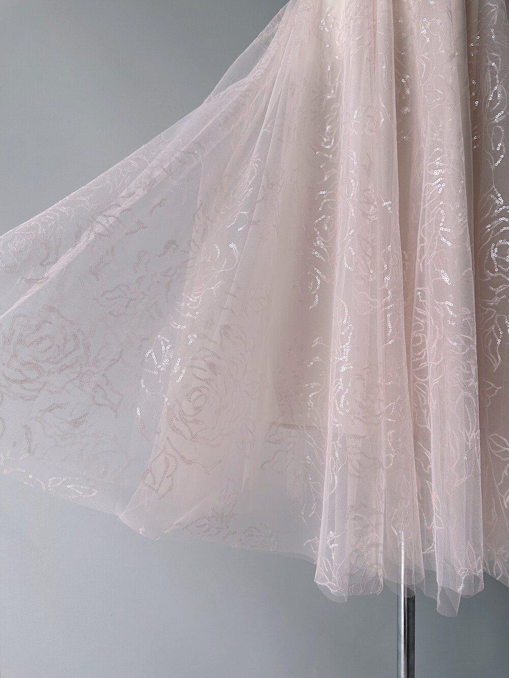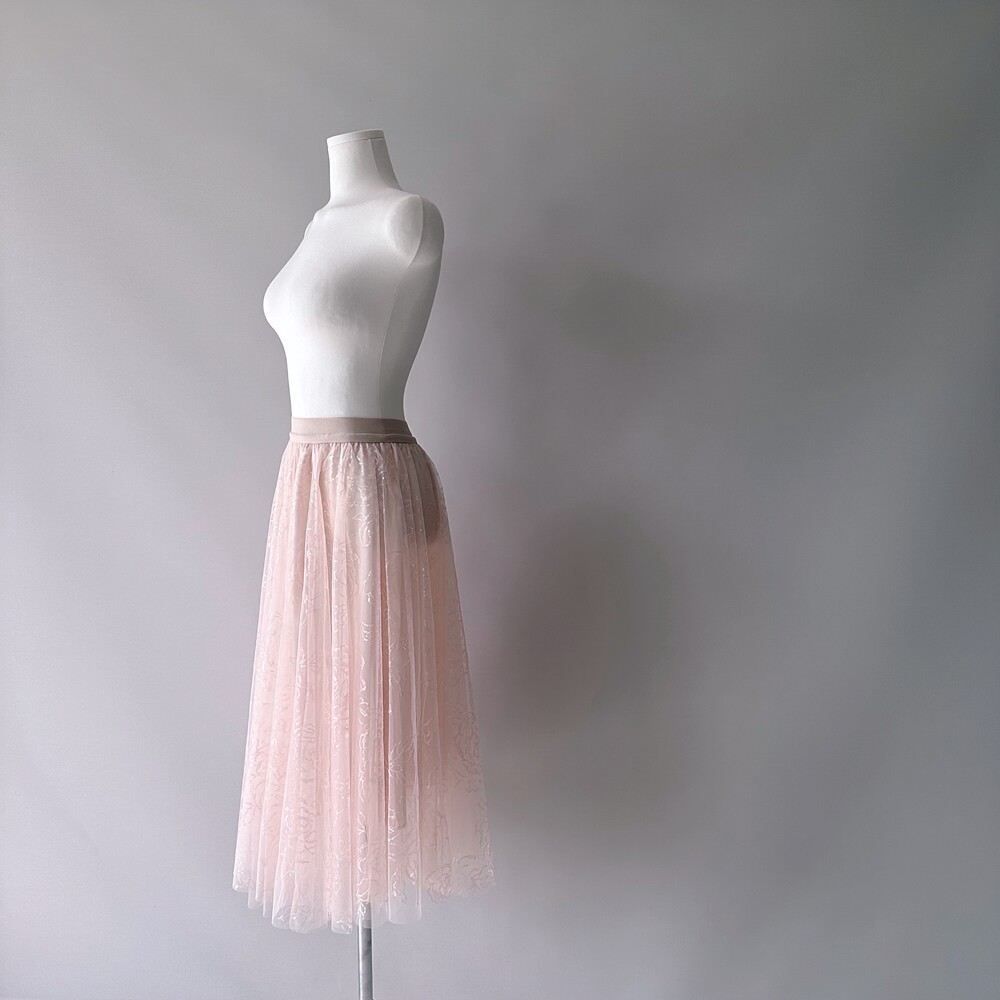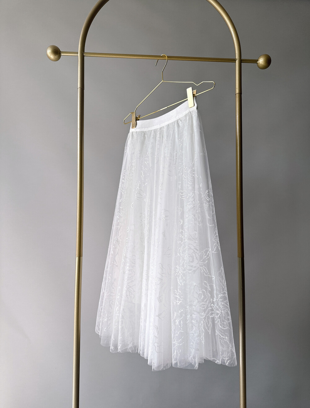 우아한 자수로 장미꽃이 수놓아진 샤 스커트.