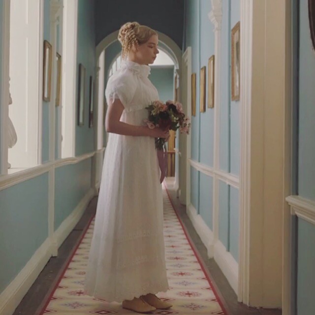 바람에 흩날리는 엠마의 쉬폰 드레스가