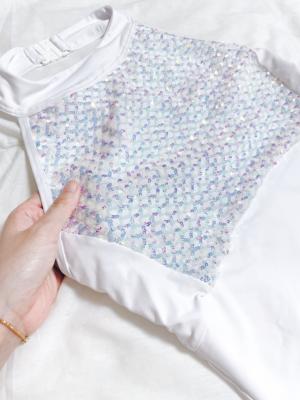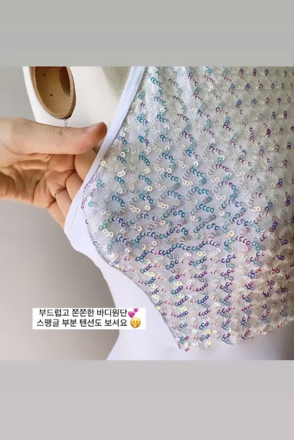 스팽글 비딩 페브릭을 레오타드 위에 올려놓는 다는 것은